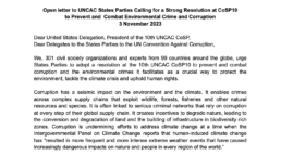 OPEN LETTER FOR CoSP 10 ON ENVIRONMENTAL CRIME AND CORRUPTION We are proud to…
