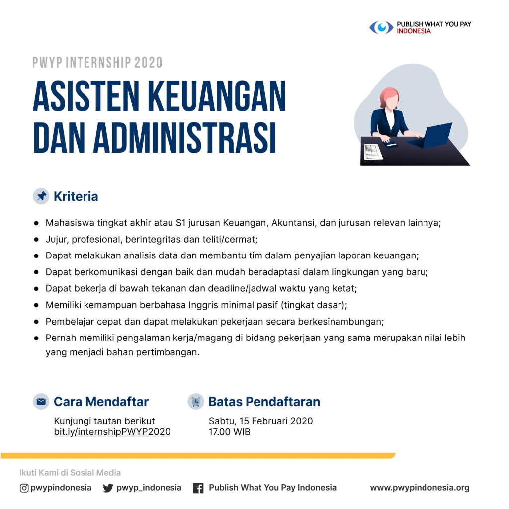 Untuk pendaftaran klik tautan berikut bit.ly/internshipPWYP2020