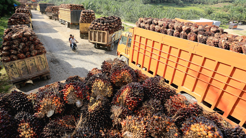 Sejumlah truk pengangkut Tanda Buah Segar kelapa sawit mengantre untuk pembongkaran di salah satu pabrik minyak kelapa sawit di Aceh Barat, Mei 2022. Antara/Syifa Yulinnas