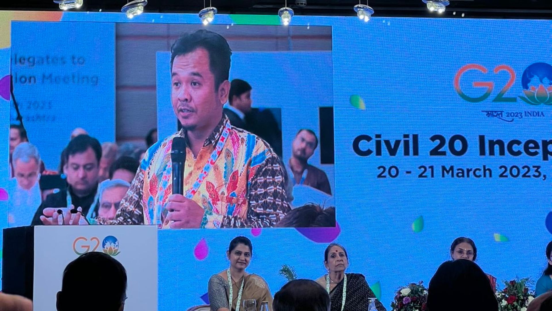 Agenda hari pertama diawali dengan Plennary Session yang membahas hasil kerja WG Integrated Holistic Health: Mind, Body, and Environment; Sustainable & Resilient Communities: Climate, Environment, and Net Zero Targets; Lifestyle for Environment (LiFE); dan Revival of Rivers & Water Management. Dilanjutkan dengan Inaugural Ceremony yang mendengarkan sambutan dari Chair dan Sherpa C20 India, Troika (Indonesia dan Brazil) dan sejumlah perwakilan Pemerintah India; serta pidato dari Kailash Satyarthi, Nobel Peace Prize Winner 2014 terkait peran penting CSO di dalam Presidensi G20 India.