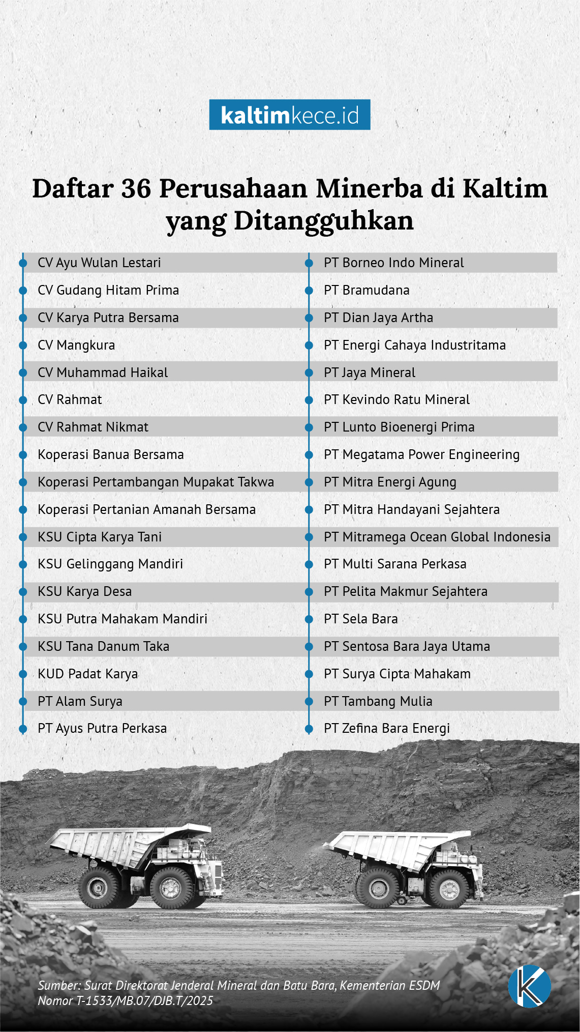 kaltimkece.id Kementerian Energi dan Sumber Daya Mineral menonaktifkan sementara operasional 190 perusahaan batu bara dan mineral. Sebanyak 36 perusahaan di antaranya berbasis di Kalimantan Timur.