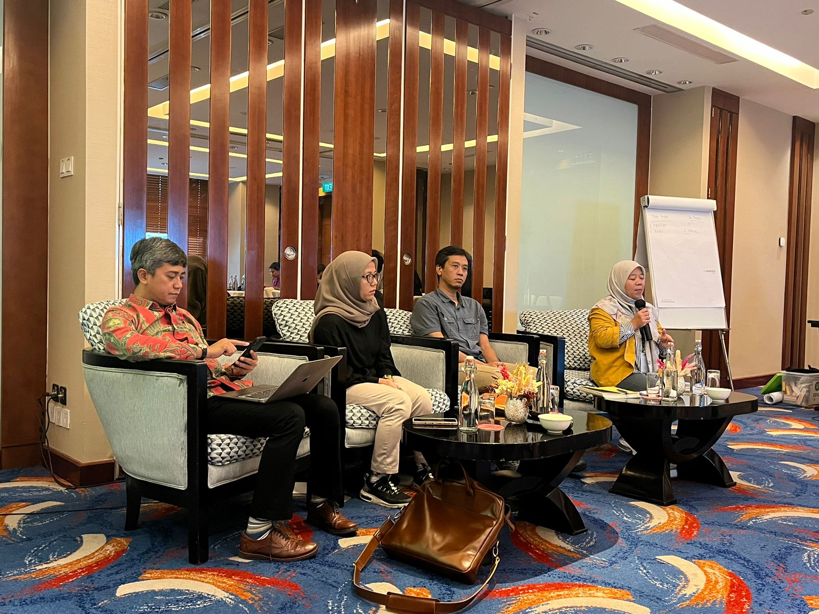 Mouna Wasef, Kepala Divisi Riset & Advokasi PWYP Indonesia, dalam workshop tersebut memberikan sejumlah catatan praktik dan pembelajaran masyarakat sipil dalam mempromosikan transisi energi berkeadilan dan keuangan berkelanjutan. Ia memaparkan bahwa Indonesia telah memperlihatkan tekadnya dalam menghadapi tantangan perubahan iklim dan transisi energi dengan merumuskan kebijakan pengarusutamaan gender yang mencakup beberapa inisiatif utama. Salah satu inisiatif kuncinya adalah dokumen Long-Term Strategy for Low Carbon and Climate Resilience (LTS-LCCR) 2050 Indonesia. Dokumen ini menyoroti pentingnya transisi energi yang efektif dan inklusif, serta pembangunan yang tahan iklim. LTS-LCCR 2050 mewajibkan adanya transisi tenaga kerja yang memadai, penciptaan pekerjaan yang layak dan berkualitas, serta pemenuhan kebutuhan kesetaraan dan keadilan gender, antar generasi, dan kelompok rentan.
