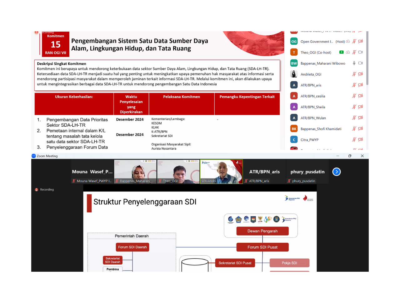 Rapat Pembahasan Komitmen 15 Pengembangan Satu Data Sumber Daya Alam, Lingkungan Hidup, dan Tata Ruang dalam Rencana Aksi Nasional Open Government Indonesia VII